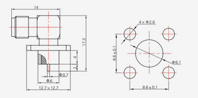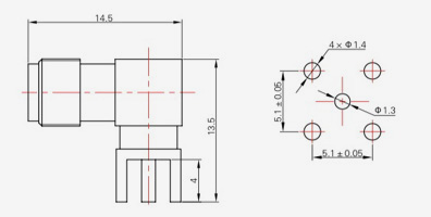 | SMA-KFD45 | 14.4 | 2.4 | 0,5×0,2 | Φ4.1 | Φ4.2 |